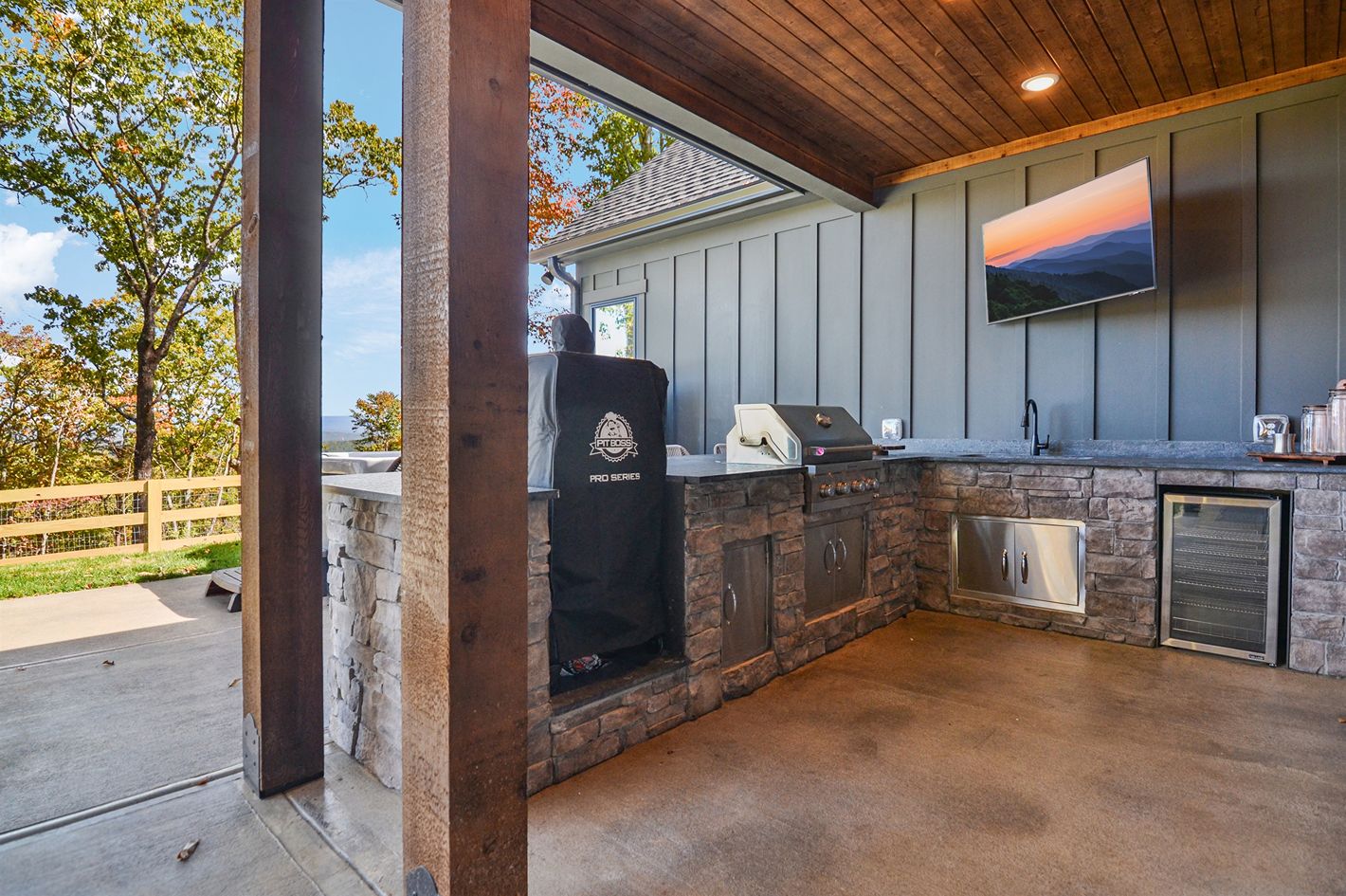Our property boasts jaw-dropping mountain views, a propane grill, soothing 6 person hot tub, outdoor seating & dining areas with tv to watch the game, OUTDOOR KITCHEN W/ PIT BOSS SMOKER, GRILL, SINK, & BEVERAGE COOLER, a fully equipped indoor kitchen with all the essentials, a toasty fire pit, entertaining game room, & multiple bedrooms with mesmerizing mountain views… The master bathroom even has a steam shower! Why choose the rest, when you can “literally” have the best!